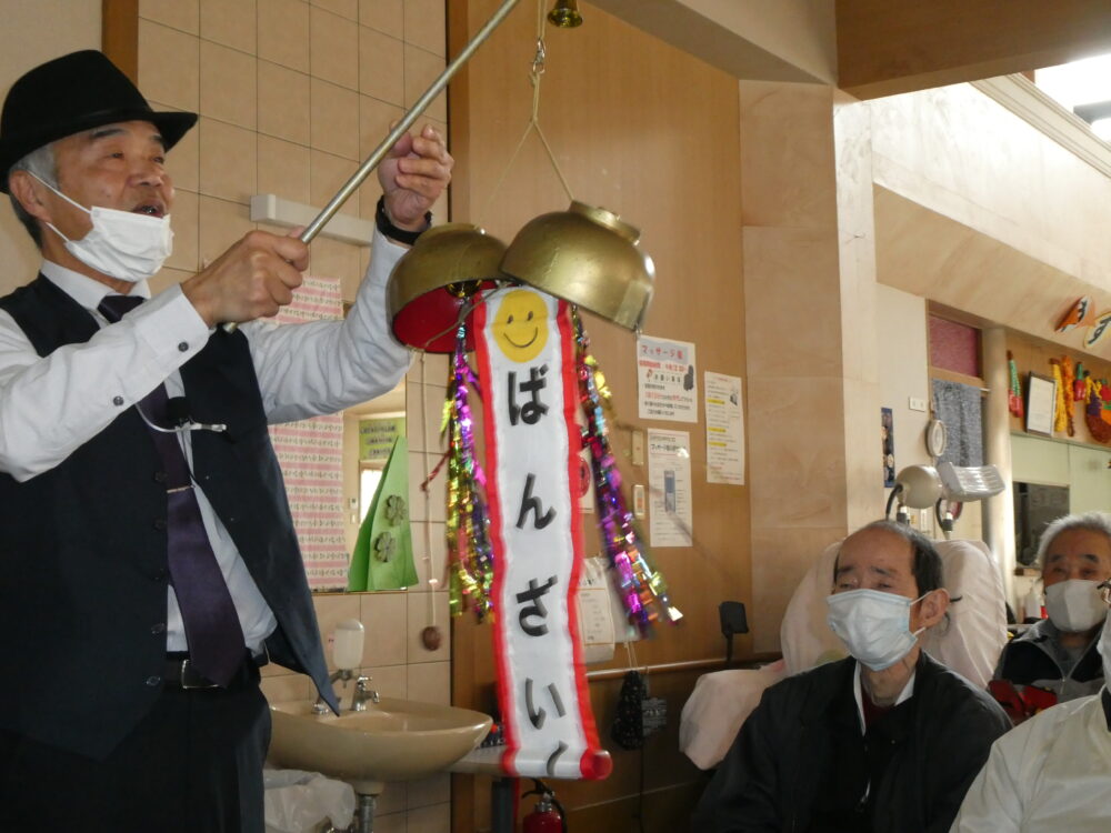 本日も「楽笑」を掲げながら、ご利用者様との会話を中心に演奏や当時の豆知識を披露して