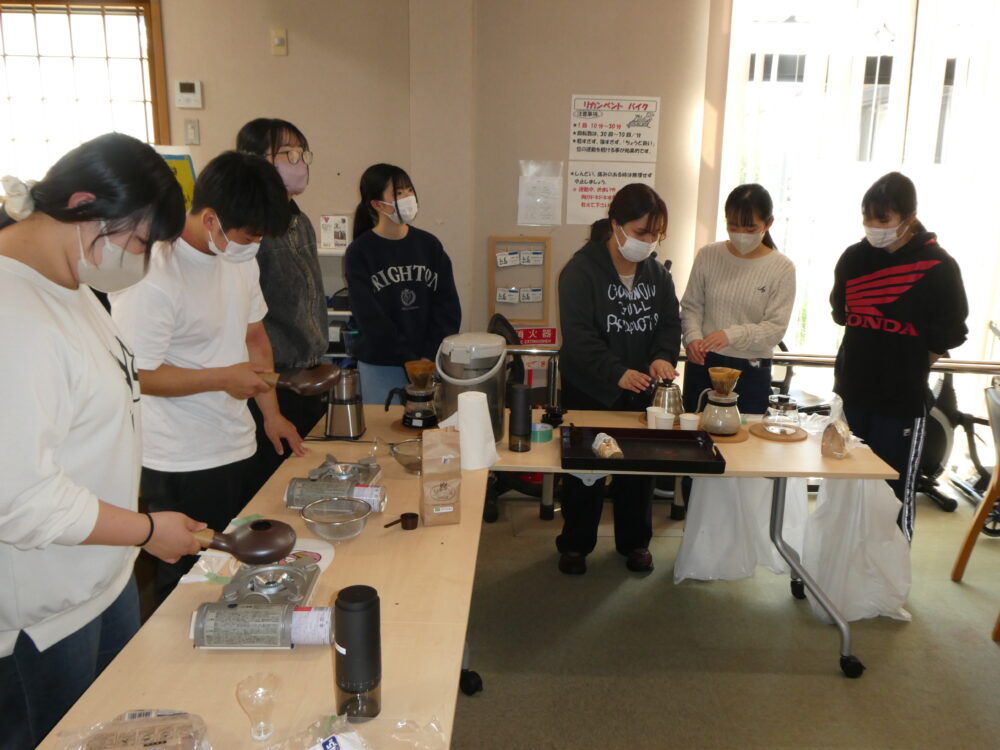 また今回は兵庫大学の学生さんも来所され、生豆の焙煎からドリップまで行い、淹れたてのコーヒーを提供してくださいました!