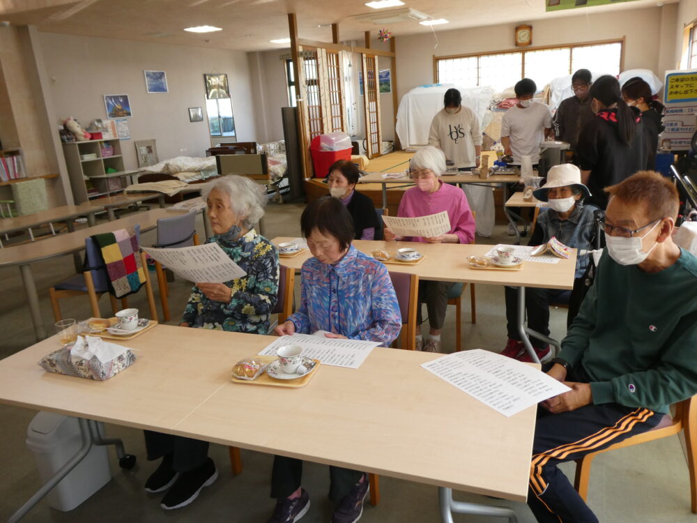 4月25日(土)、『あんだんて様』をお招きしてやすらぎカフェを開催しました♪当施設のご利用者様をはじめ、一般のお客様5名をお迎えし、楽しい時間を一緒に過ごさせていただきました♪